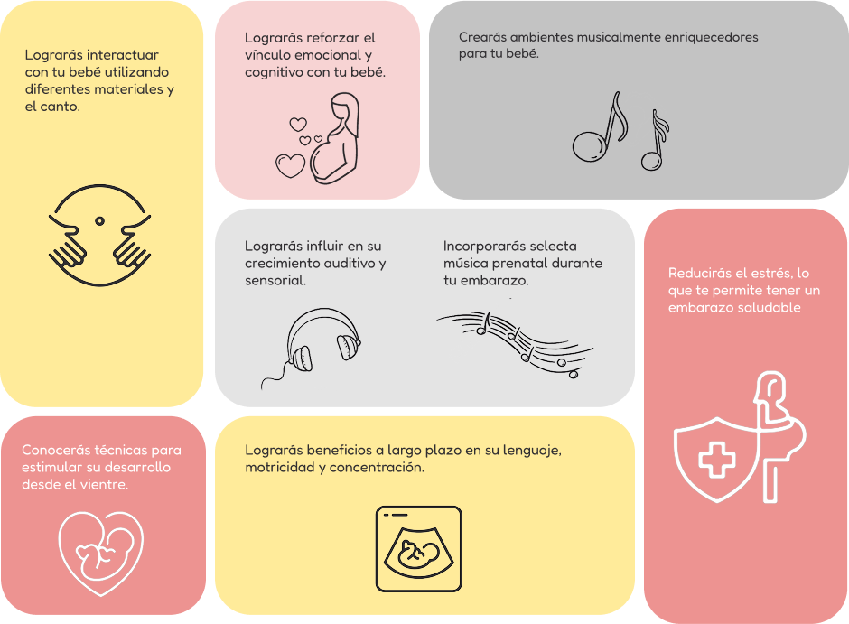 Con dinámicas dirigidas a madres gestantes desde los 4 meses, obstetras o similares que trabajen con mamitas embarazadas. Lo mejor es que tienes la grabación para repetirla y estimular a tu bebé con la música cuando desees.