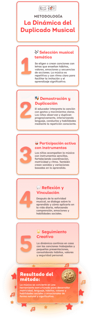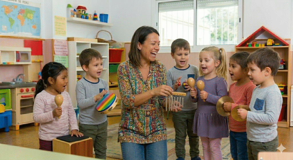 Te encanta trabajar con música y sabes que a los niños les gusta, pero muchas veces no tienes claridad sobre qué objetivo estás estimulando. Cantas, haces dinámicas, pero no estás segura si realmente estás potenciando el lenguaje, la atención o la motricidad de manera intencional y progresiva.