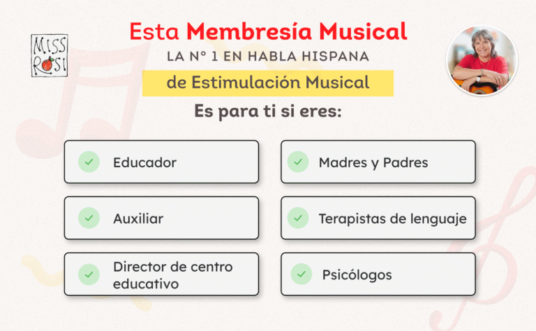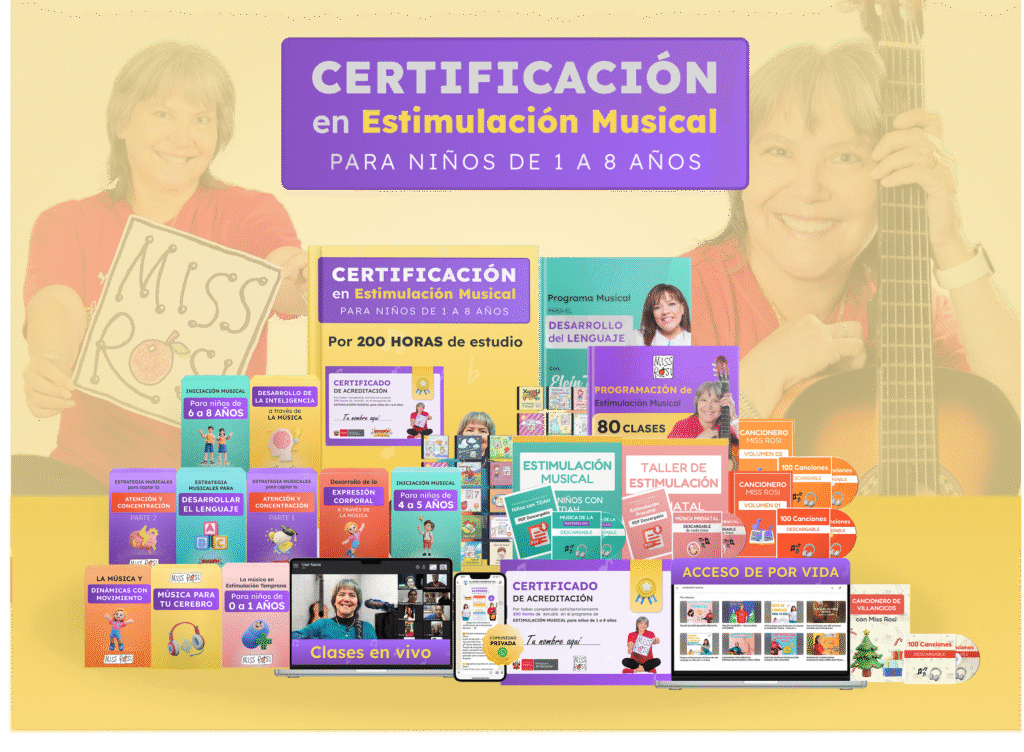 Quiero compartir contigo lo que he venido aplicando en estos 33 años de experiencia como Miss Rosi siendo profesora de Estimulación Musical y cantautora de +1500 canciones infantiles, creados para educadores y utilizados en más de 30 países con niños de 1 a 8 años.
